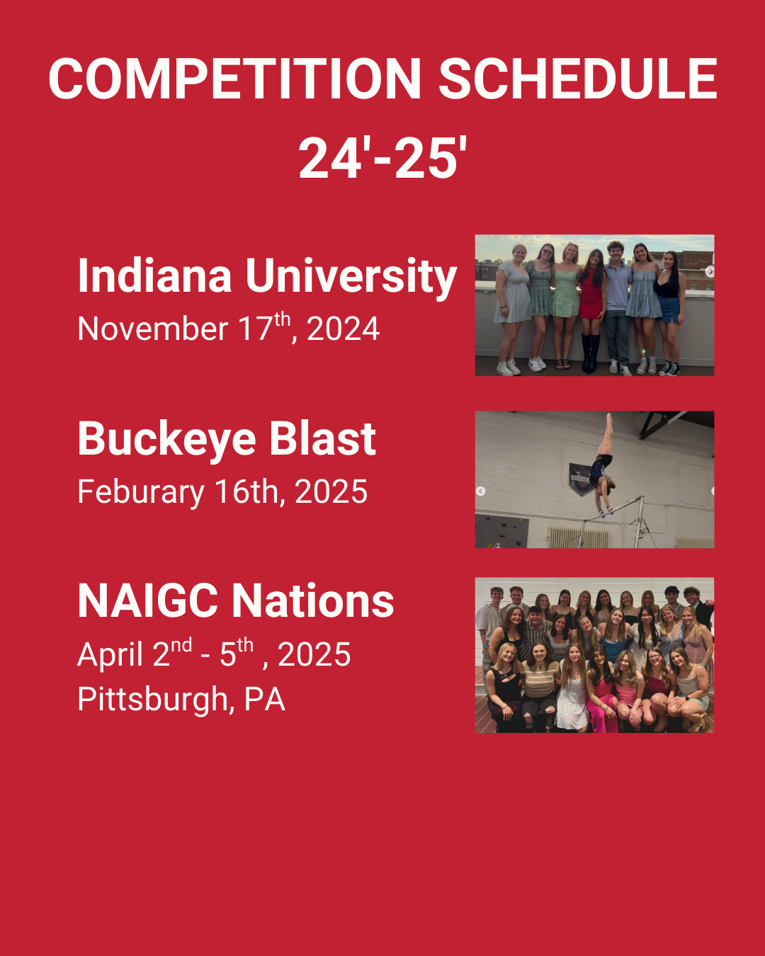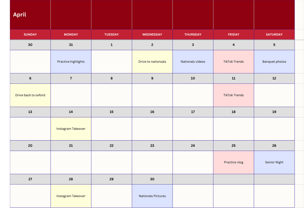I reviewed other collegiate club gymnastics programs and high-performing gymnastics accounts to identify trends in: